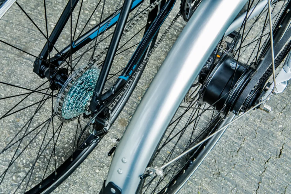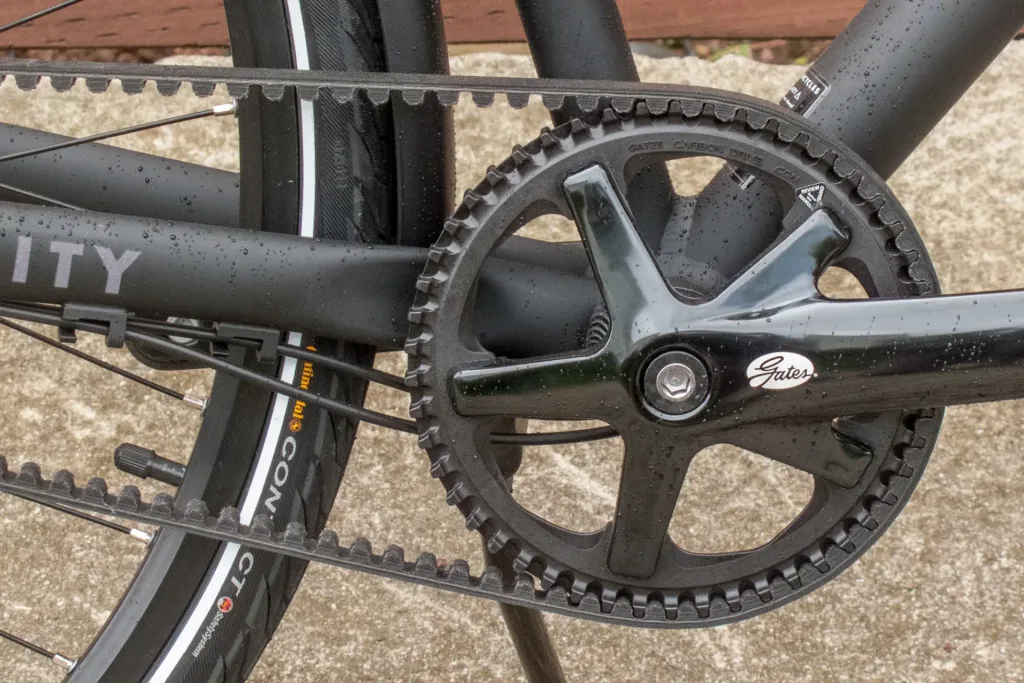 A belt-drive bike with an internal gear hub offers low maintenance and grease-free riding but requires self-assembly or added assembly costs.