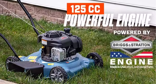 • Powerful 125cc OHV Engine: The heart of this mower is its powerful engine, which ensures reliable performance and the ability to handle various grass types and conditions.