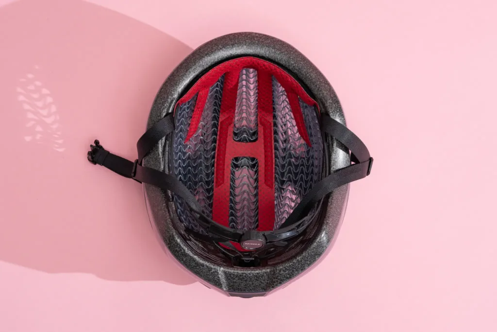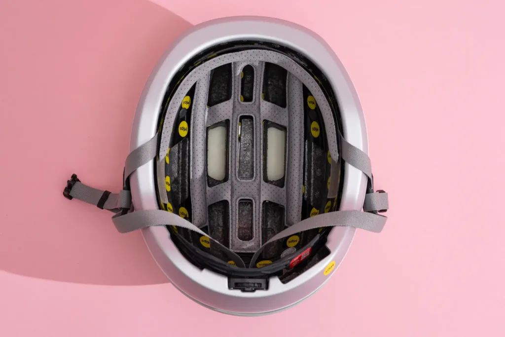 The helmet also features a silicone bead on the headband to redirect sweat, and while hard to quantify, I never had sweat drip into my eyes. It’s easy to adjust with a V-shaped slider and has a slim chin buckle, making it versatile and comfortable for different riding styles. Although pricier, it’s a great option for riders who switch between road and commuter bikes.