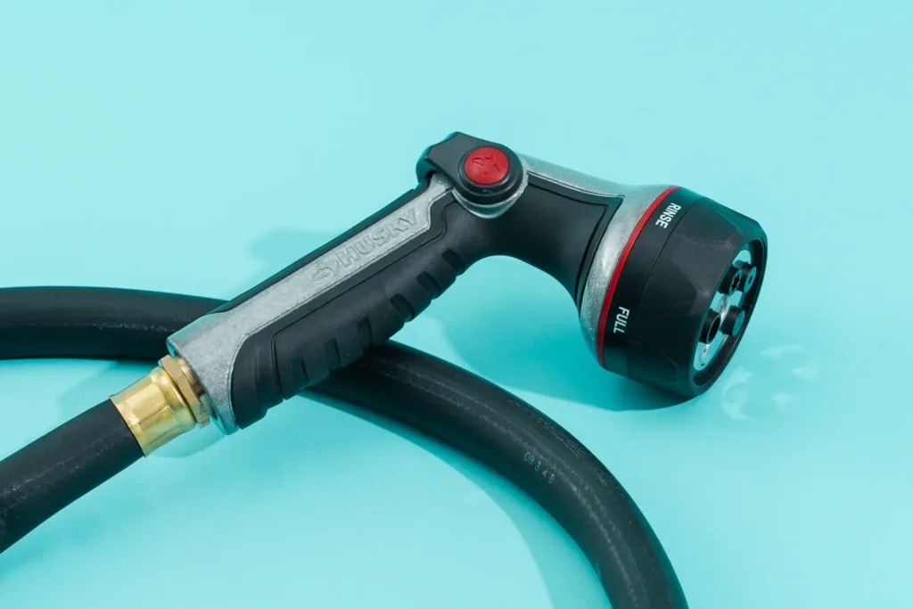 The Husky Pro lacks three spray patterns: center, cone, and flat, which some may consider non-essential. However, senior editor Harry Sawyers pointed out that the flat spray is great for car washes, providing a gentle, wide sheet of water that effectively rinses suds with minimal splashing. Since both nozzles are usually priced similarly, we recommend the Melnor R301 unless the Husky is your only option.