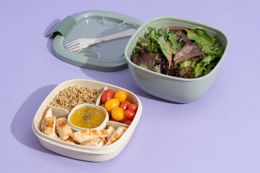 Start by thinking about what you typically eat. If salads are your go-to, a bowl with separate compartments for toppings and dressing might be ideal. If leftovers are more your style, a leakproof bento box or food storage container works well. For a classic sandwich-and-snack lunch, an insulated bag is a good choice.