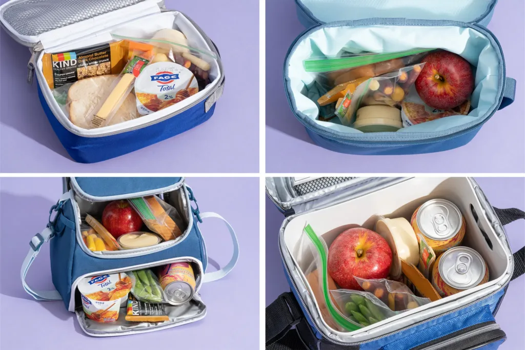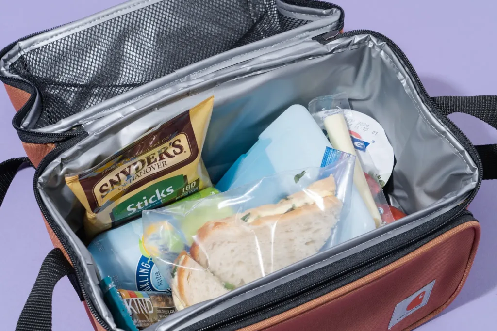 Next, consider where you’ll eat. Do you have access to a fridge? A compact bento box fits easily in an office fridge. If you’re on a jobsite or working long hours without refrigeration, a larger insulated bag with room for lunch, snacks, and drinks will be more practical.