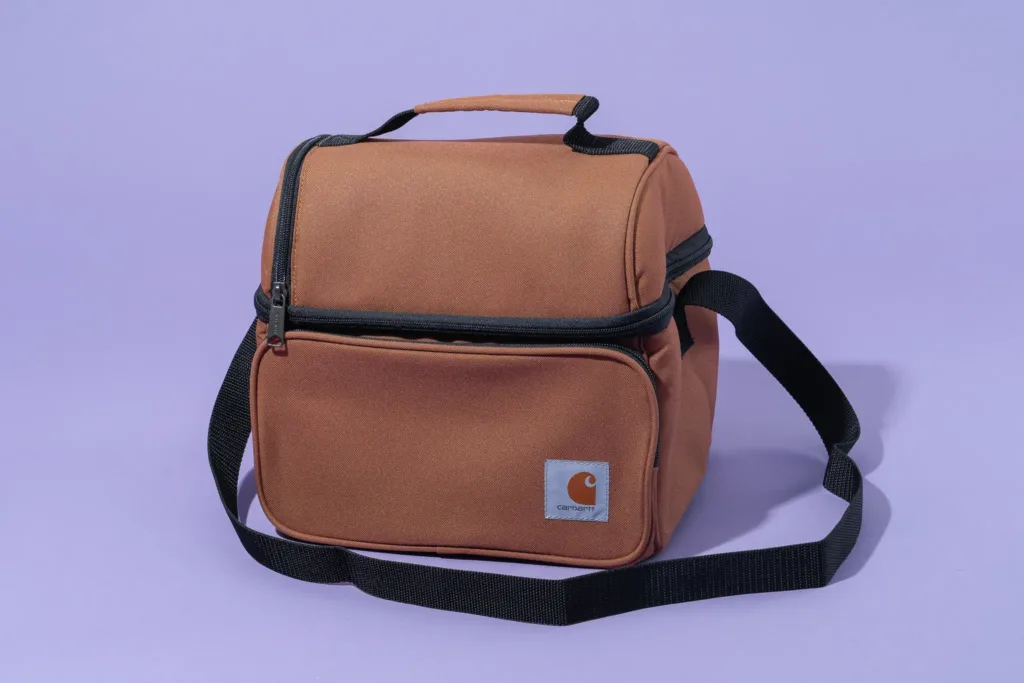 The Carhartt Lunch Cooler is bulky with soft sides, making it too large for most backpacks. It’s not ideal for commuting by bike, foot, or subway. Additionally, it doesn’t protect squashable food as well as rigid-sided lunch boxes. If firm sides are important, the Coleman 9-Can Cooler offers a removable rigid plastic insert, though we found its layout less convenient than the Carhartt Cooler’s.