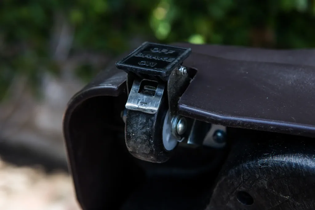 The Shademobile Rolling Umbrella Base is easy to move thanks to its four wheels, which make it simple to pivot across decks or patios. After filling it with sand (about 110 pounds), our tester found it rolled smoothly over cracked concrete, with two wheels featuring brakes to keep it in place.